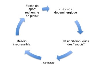 Tous ces bienfaits vont être de plus en plus recherchés, amenant progressivement au passage de la pratique physique simple, à la pratique excessive puis à l’addiction.