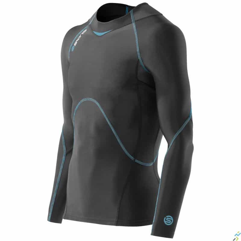 Concernant les muscles supérieurs, le produit Skins haut manches longues Coldblack agit de la même manière que le collant long, avec des sensations similaires. Ce haut offre un maintien optimum de la ceinture lombaire et semble protéger des tassements dus aux chocs générés par la course. Le confort est également au rendez-vous, la liberté de mouvement est totale.